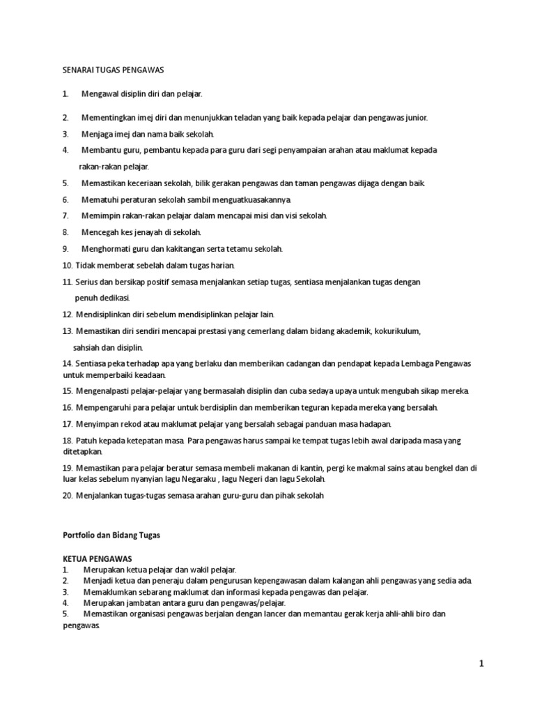 Peranan Dan Tanggungjawab Pengawas Pdf